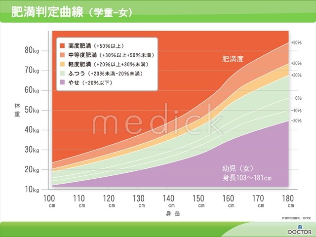 学童・女子(100cm~180cm)の肥満判定曲線です。