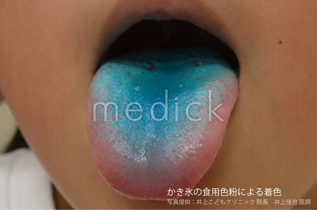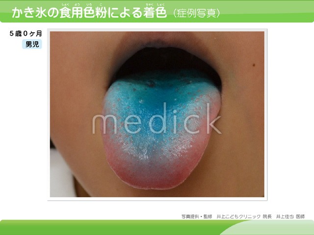 かき氷の食用色粉による着色の症例写真です。 sh-00763/小児科/皮膚の病気/色素沈着/ケロイド...