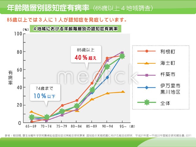 85歳以上の3人に1人が認知症を発症していることを疫学データで説明します。 no-00078/脳神経...