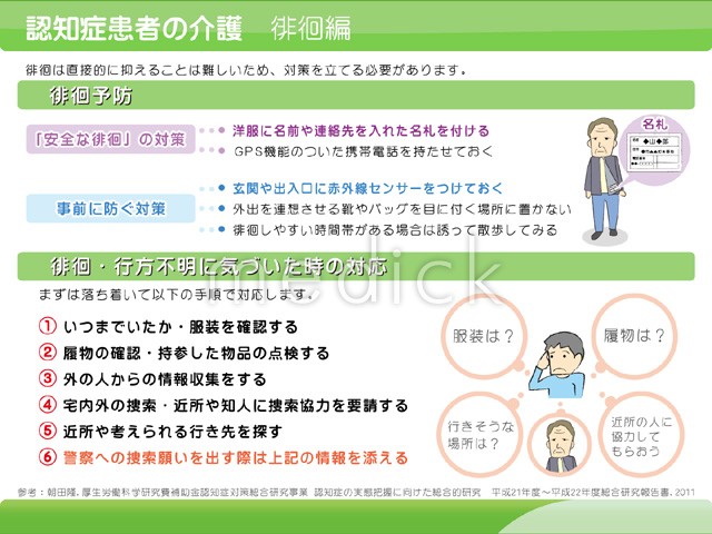 認知症患者の徘徊へのポイントを説明します。 no-00094/脳神経/認知症/介護/徘徊/徘徊予防/...