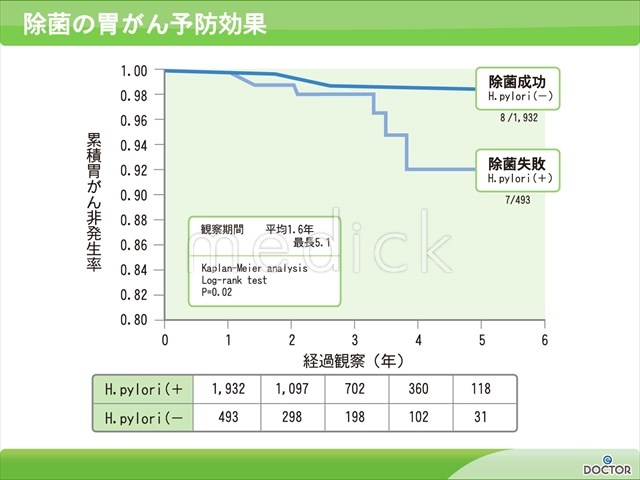 ピロリ菌除菌成功により胃がんの発生率を抑えれる事を示すデータです。n-00474/胃/消化器/胃がん...